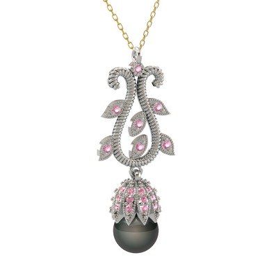 Siyah inci ve pembe kuvars 925 ayar gümüş kolye (40 cm altın rolo zincir)