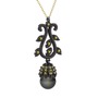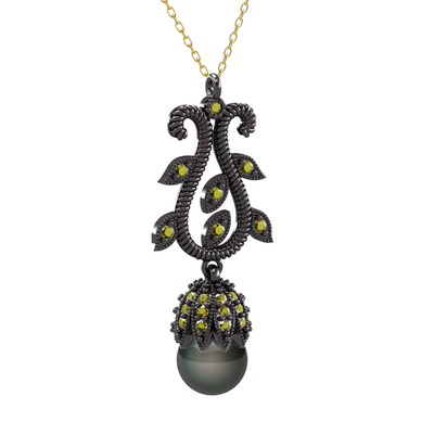 Siyah inci ve peridot 925 ayar siyah rodyum kaplama gümüş kolye (40 cm altın rolo zincir)