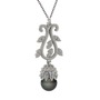 Siyah inci ve pırlanta 18 ayar beyaz altın kolye (0.51 karat, 40 cm gümüş rolo zincir)