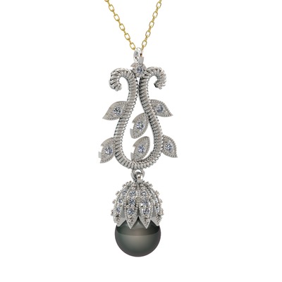 Siyah inci ve pırlanta 925 ayar gümüş kolye (0.51 karat, 40 cm altın rolo zincir)