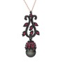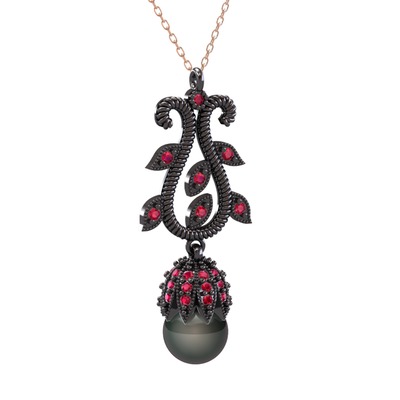 Siyah inci ve rodolit garnet 925 ayar siyah rodyum kaplama gümüş kolye (40 cm rose altın rolo zincir)