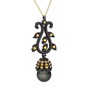 Siyah inci ve sitrin 925 ayar siyah rodyum kaplama gümüş kolye (40 cm altın rolo zincir)
