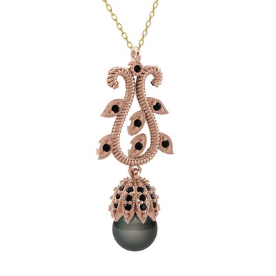 Siyah inci ve siyah zirkon 925 ayar rose altın kaplama gümüş kolye (40 cm altın rolo zincir)