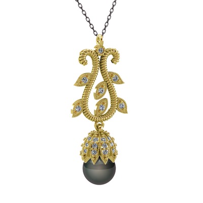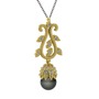 Siyah inci ve swarovski 14 ayar altın kolye (40 cm gümüş rolo zincir)