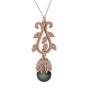Siyah inci ve swarovski 18 ayar rose altın kolye (40 cm beyaz altın rolo zincir)