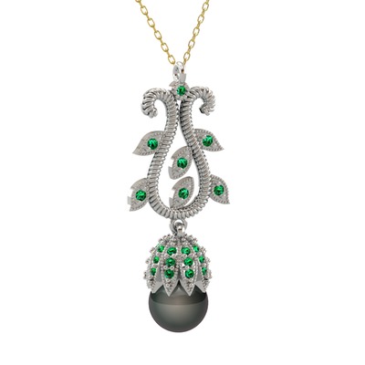 Siyah inci ve yeşil kuvars 14 ayar beyaz altın kolye (40 cm altın rolo zincir)