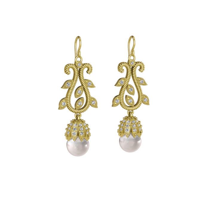 Inci ve beyaz zirkon 925 ayar altın kaplama gümüş küpe