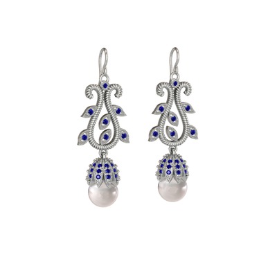 Inci ve lab safir 8 ayar beyaz altın küpe