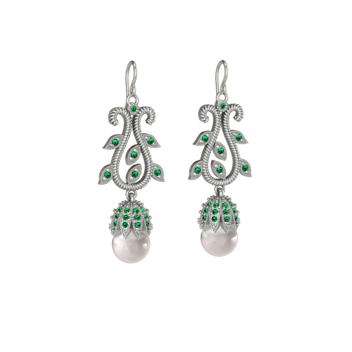 Inci ve yeşil kuvars 18 ayar beyaz altın küpe
