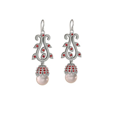 Pembe inci ve garnet 8 ayar beyaz altın küpe