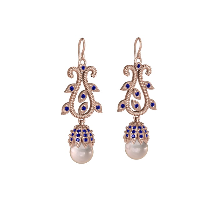Pembe inci ve lab safir 925 ayar rose altın kaplama gümüş küpe