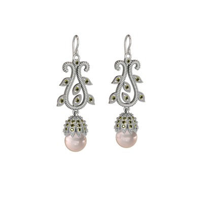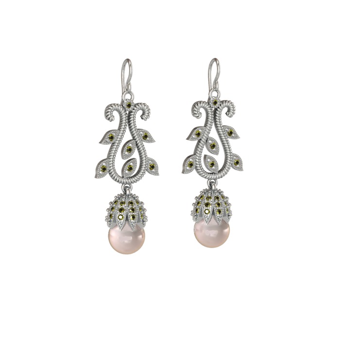Pembe inci ve peridot 18 ayar beyaz altın küpe