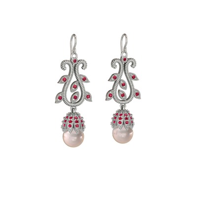 Pembe inci ve rodolit garnet 8 ayar beyaz altın küpe