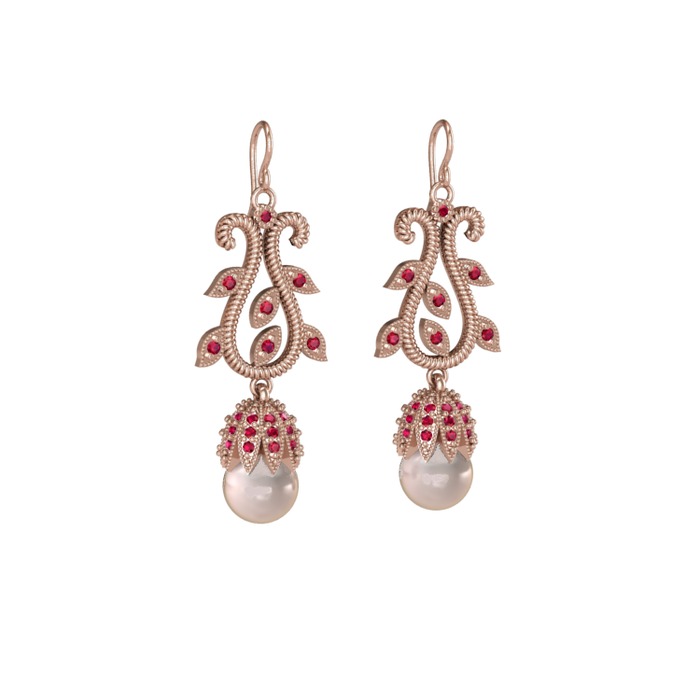 Pembe inci ve rodolit garnet 8 ayar rose altın küpe