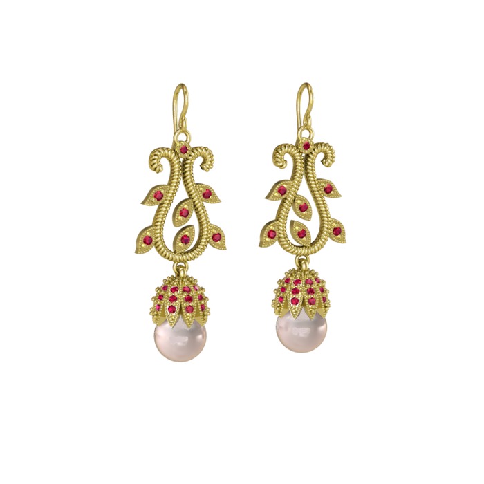Pembe inci ve rodolit garnet 925 ayar altın kaplama gümüş küpe