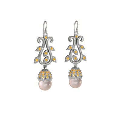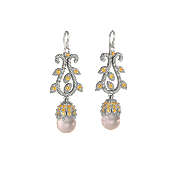 Pembe inci ve sitrin 925 ayar gümüş küpe
