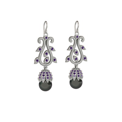 Siyah inci ve ametist 925 ayar gümüş küpe