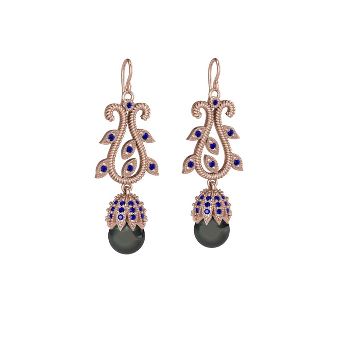 Siyah inci ve lab safir 14 ayar rose altın küpe