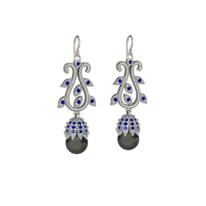 Siyah inci ve lab safir 925 ayar gümüş küpe