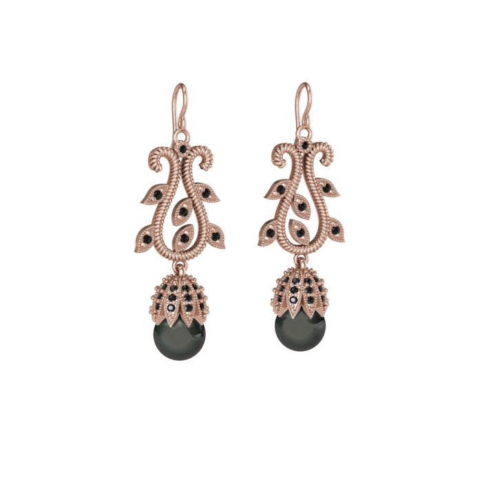 Siyah inci ve siyah zirkon 14 ayar rose altın küpe