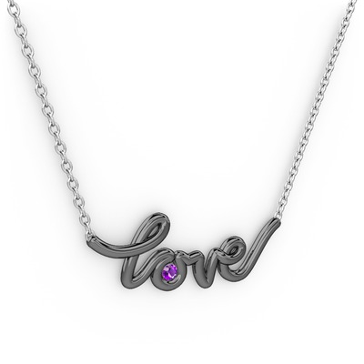 Ametist 925 ayar siyah rodyum kaplama gümüş kolye (40 cm beyaz altın rolo zincir)