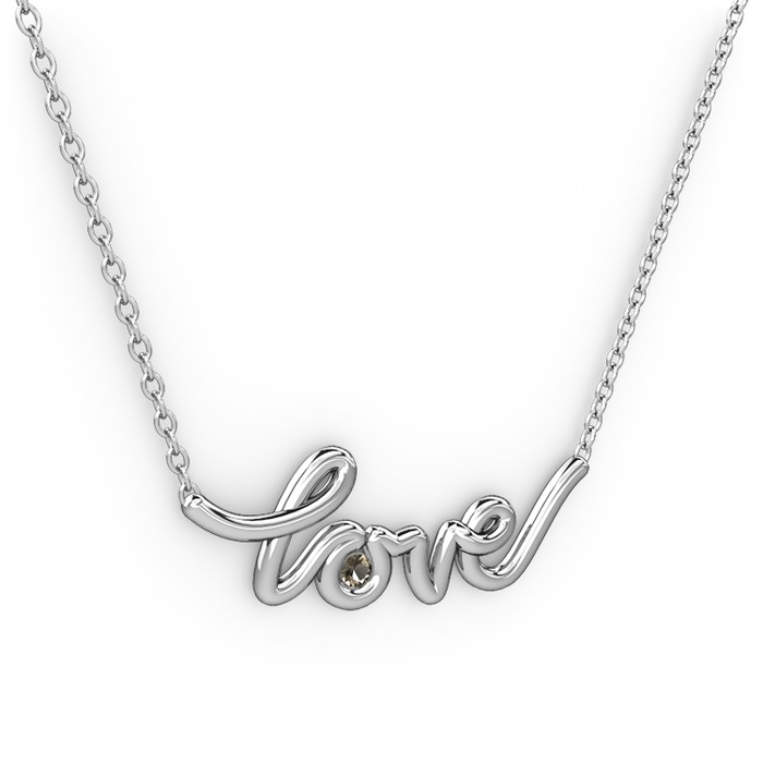 Dumanlı kuvars 8 ayar beyaz altın kolye (40 cm beyaz altın rolo zincir)