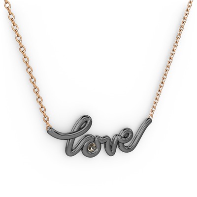 Dumanlı kuvars 925 ayar siyah rodyum kaplama gümüş kolye (40 cm rose altın rolo zincir)