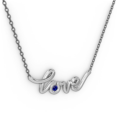 Lab safir 925 ayar gümüş kolye (40 cm gümüş rolo zincir)