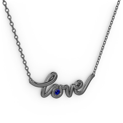 Lab safir 925 ayar siyah rodyum kaplama gümüş kolye (40 cm gümüş rolo zincir)