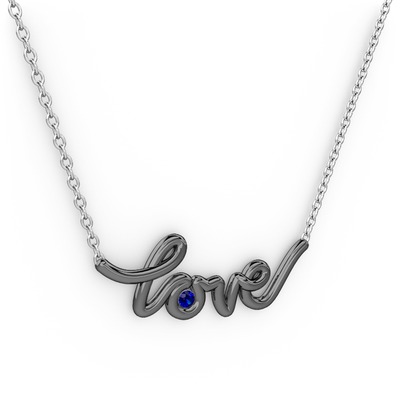 Lab safir 925 ayar siyah rodyum kaplama gümüş kolye (40 cm gümüş rolo zincir)