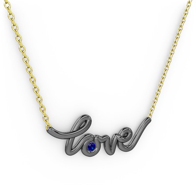 Lab safir 925 ayar siyah rodyum kaplama gümüş kolye (40 cm gümüş rolo zincir)