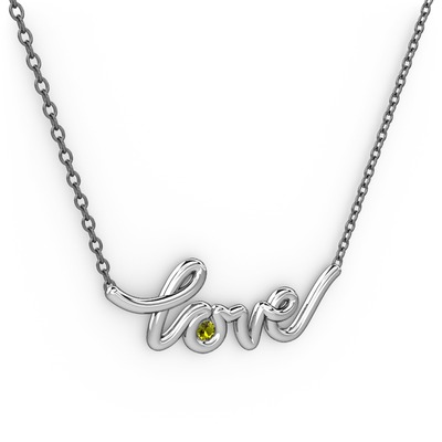 Peridot 14 ayar beyaz altın kolye (40 cm gümüş rolo zincir)