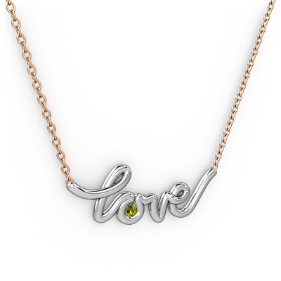 Peridot 8 ayar beyaz altın kolye (40 cm rose altın rolo zincir)