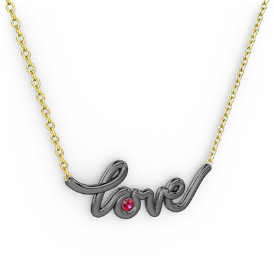 Rodolit garnet 925 ayar siyah rodyum kaplama gümüş kolye (40 cm gümüş rolo zincir)