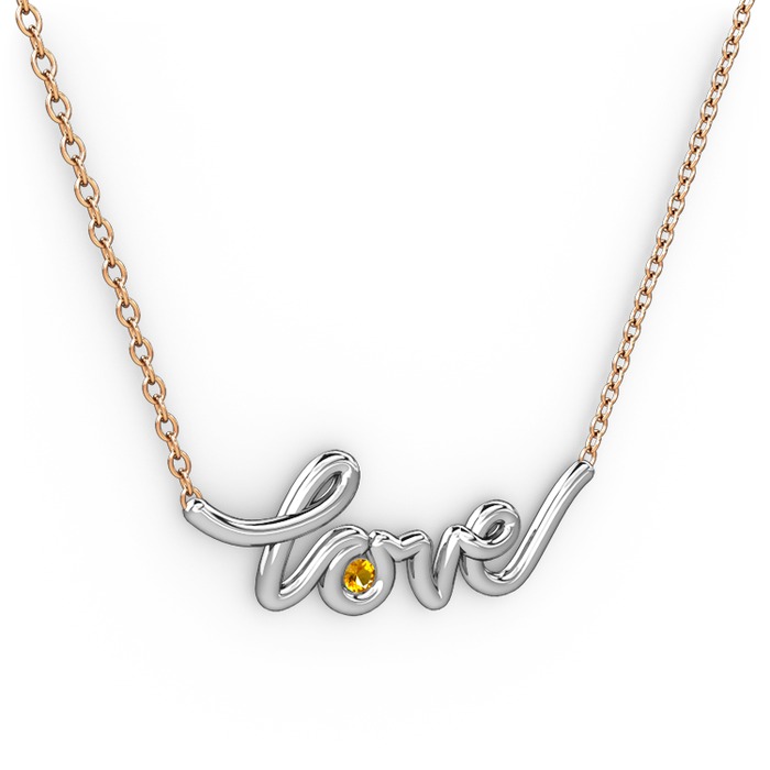 Sitrin 14 ayar beyaz altın kolye (40 cm gümüş rolo zincir)