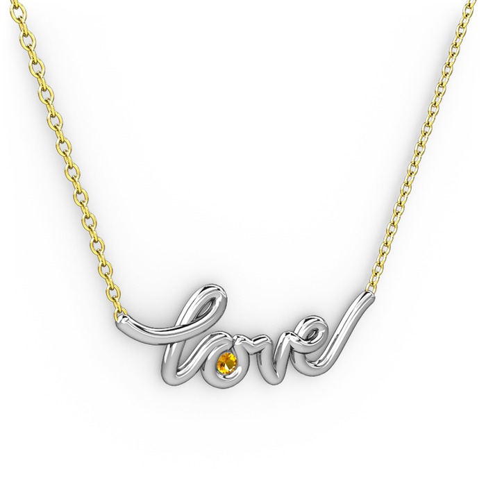 Sitrin 8 ayar beyaz altın kolye (40 cm altın rolo zincir)