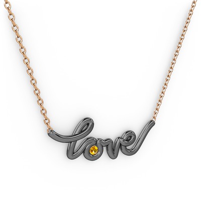 Sitrin 925 ayar siyah rodyum kaplama gümüş kolye (40 cm gümüş rolo zincir)