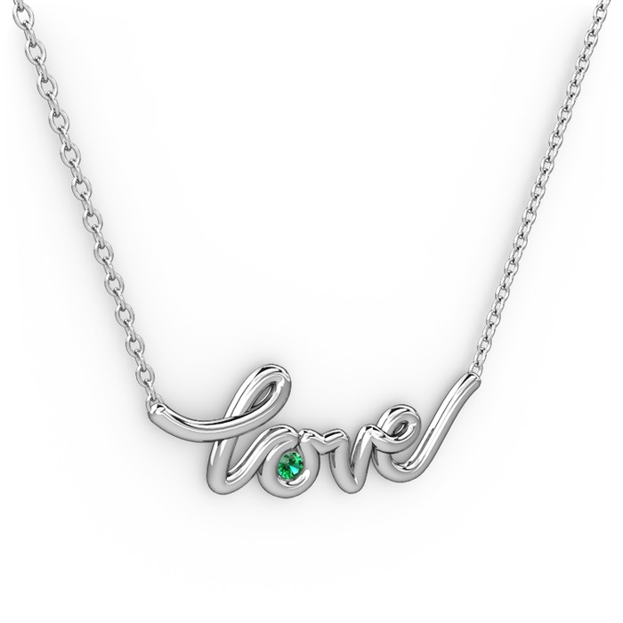 Yeşil kuvars 14 ayar beyaz altın kolye (40 cm gümüş rolo zincir)