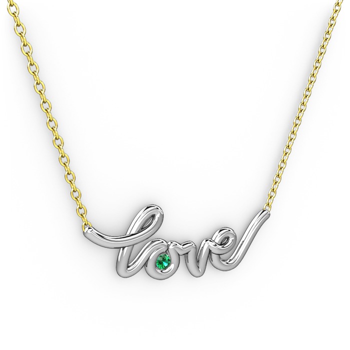 Yeşil kuvars 14 ayar beyaz altın kolye (40 cm gümüş rolo zincir)