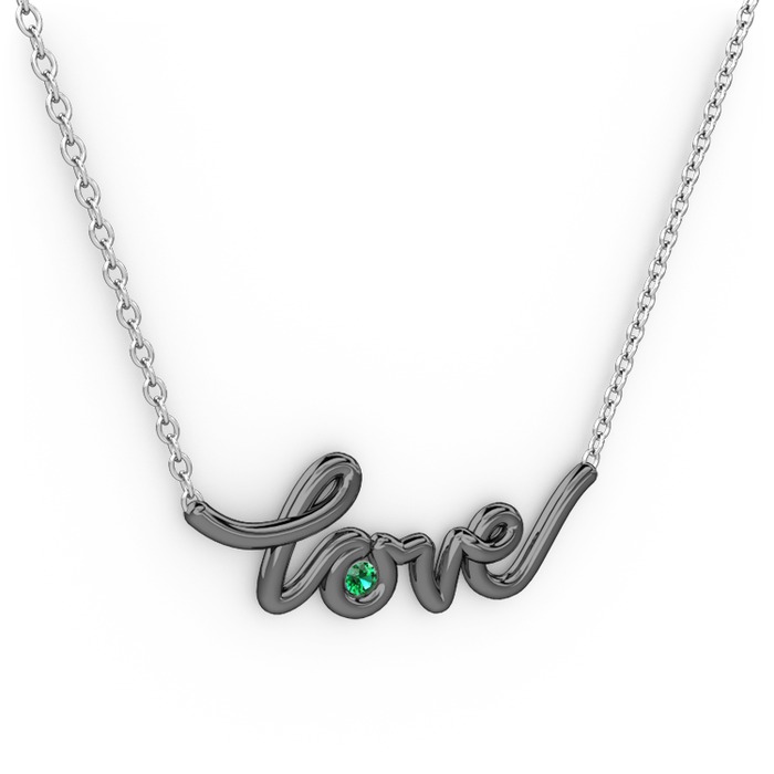Yeşil kuvars 925 ayar siyah rodyum kaplama gümüş kolye (40 cm beyaz altın rolo zincir)