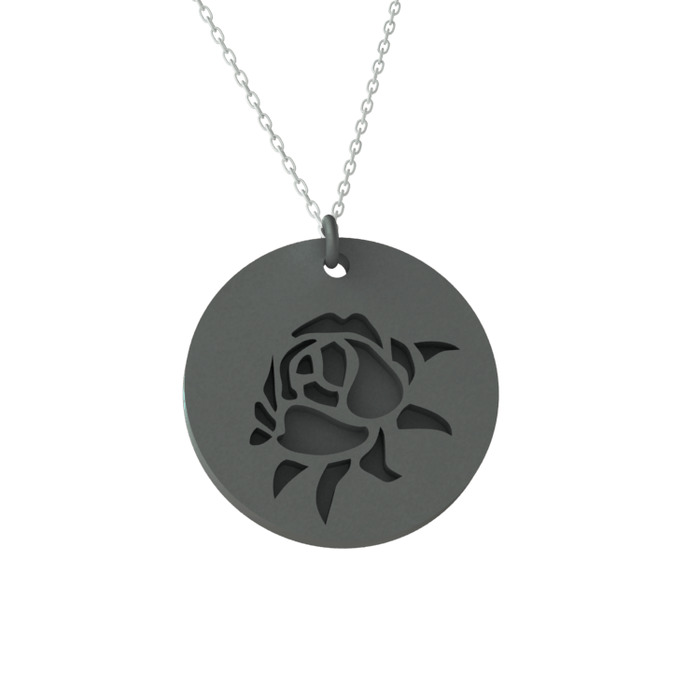 925 ayar siyah rodyum kaplama gümüş kolye (40 cm beyaz altın rolo zincir)