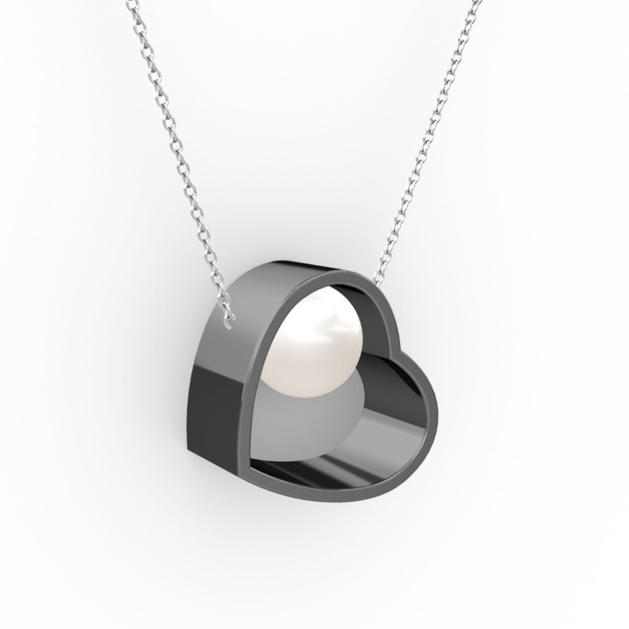 Inci 925 ayar siyah rodyum kaplama gümüş kolye (40 cm beyaz altın rolo zincir)