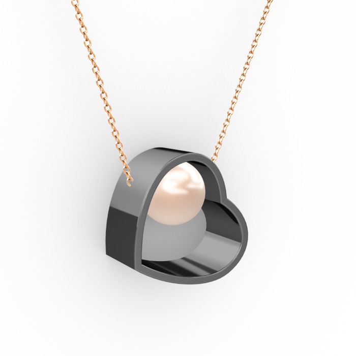 Pembe inci 925 ayar siyah rodyum kaplama gümüş kolye (40 cm gümüş rolo zincir)