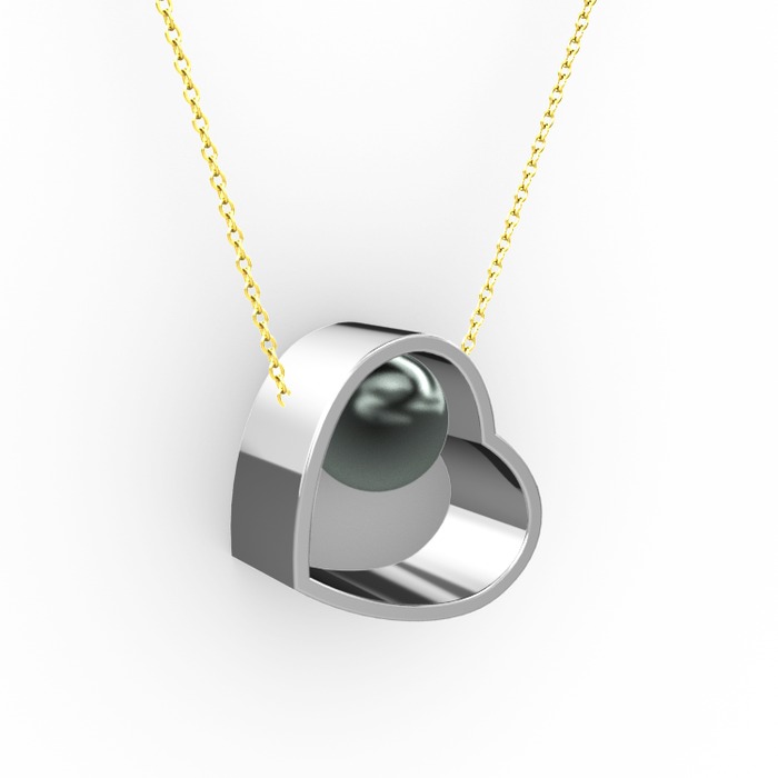 Saklı İnci Kolye - Siyah inci 925 ayar gümüş kolye (40 cm gümüş rolo zincir)