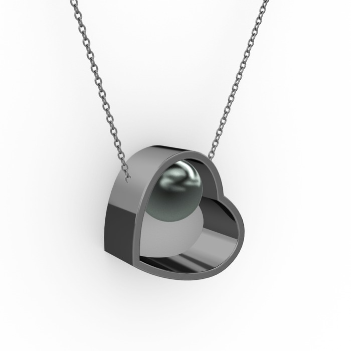 Siyah inci 925 ayar siyah rodyum kaplama gümüş kolye (40 cm gümüş rolo zincir)