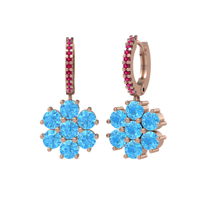 Akuamarin ve rodolit garnet 18 ayar rose altın küpe