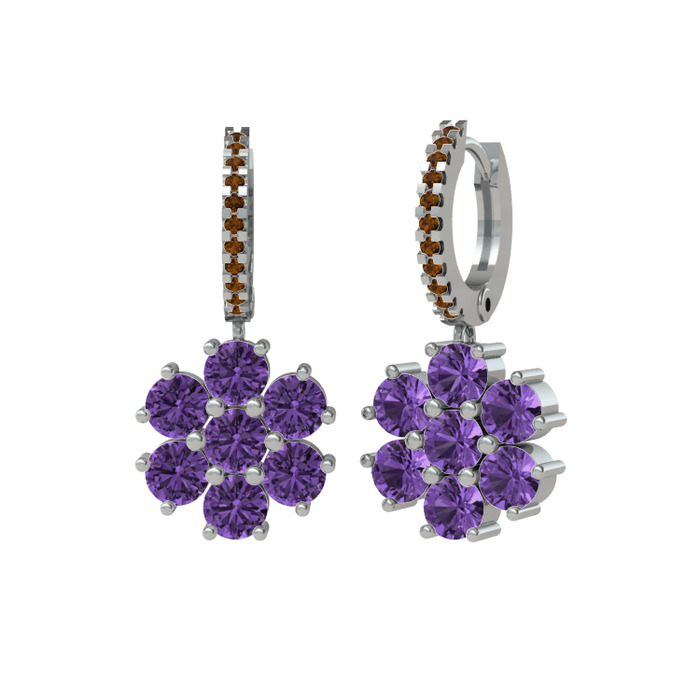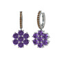 Ametist ve dumanlı kuvars 18 ayar beyaz altın küpe