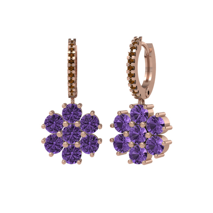 Ametist ve dumanlı kuvars 18 ayar rose altın küpe