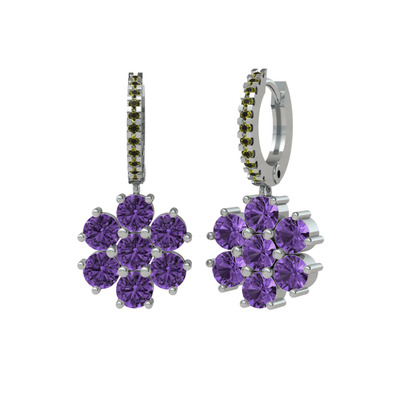 Ametist ve peridot 18 ayar beyaz altın küpe
