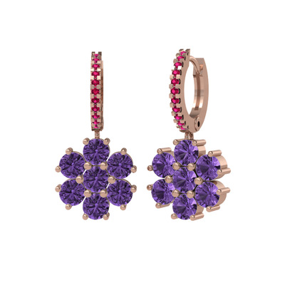 Ametist ve rodolit garnet 8 ayar rose altın küpe